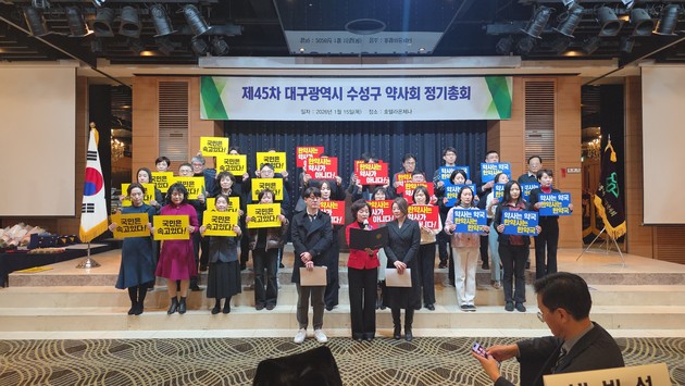 대구시수성구약사회(회장 구유니스)는 지난 15일 호텔 라온제나 5층 에떼르넬홀에서 제45차 정기총회를 개최했다.