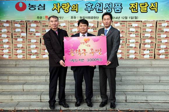 농심은 지난 1일 서울 동작복지재단과 ‘사랑의 라면 전달식’을 갖고 신라면 3000박스를 기부했다.