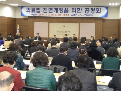특히 의료3단체와 공조를 유지하며 범의료계의 입장을 견지해왔던 한의사협회가 공청회 개최 당일 돌연 공조의 틀을 깨면서 사전에 복지부와 ‘빅딜’이 이뤄진 게 아니냐는 의혹이 제기되고 있다. 복지부 김강립 의료정책팀장은 15일 오후 2시 한국보건사회연구원 대강당에서 열린 복지부 주최의 ‘의료법 전면개정을 위한 공청회’에서 의료법에 의료가 아닌 유사의료행위에 관한 근거규정을 두는 것은 법체계상 부합하지 않는다는 논리를 들어 이같이 밝혔다. 김 팀장은 이날 성익제 병원협회 사무총장과 신상문 한의사협회 법제이사가 유사의료행위 규정에 대해 문제를 삼자 토론회 답변에서 기다렸다는 듯이 “유사의료행위에 대한 새로운 규정에 대해 충분한 연구가 진행되지 않았다”며 “아직 사회적 합의와 의견수렴이 안됐다는 지적과 법조문 자체가 법체계상 적합하지 않다는 인식에 따라 (유사의료행위를) 삭제하도록 방침을 세우겠다”고 밝혔다. 유사의료행위 등 조항은 의료법 개정안 제113조에 신설된 항목으로 ①항은 의료인이 아닌 자가 행하여도 보건위생상 위해가 생길 우려가 없는 경우에는 제5조에 불구하고 유사의료행위를 할 수 있다 ②항은 제1항에 따른 유사의료행위의 종류, 유사의료행위자의 자격 및 업무범위 등 유사의료행위에 필요한 사항은 따로 법률로 정한다 등의 내용으로 돼 있다. 한의사협회는 “문제의 개정안 조항은 보건위생상 위해가 생길 우려가 없는 경우에 대한 판단기준이나 판단자 등과 관련해 첨예한 사회적 갈등을 초래할 수 있을 뿐 아니라 보건위생상 위해가 발생하지 않는다면, 질병의 치료 또는 예방행위도 유사의료행위의 범주에 포함되도록 하고 있어 ‘질병의 치료 또는 예방행위’를 의료인의 의료행위로 판시한 대법원과 헌법재판소의 판결과 배치된다”고 주장하고 있다. 토론회에 앞서 김 팀장은 주제발표를 통해 “삶의 질 향상에 대한 관심이 커지면서 의료행위의 경계선에 위치한 새로운 서비스에 대한 국민 욕구가 증대되고 있는 상황에서 유사의료행위로 규정하기에 곤란한 신규 서비스를 안정적으로 제공할 필요가 있다”면서 “유사의료행위업종의 합법화와 활성화를 통해 양질의 유사의료서비스 이용 제고 및 국민보건 증진에 기여할 것으로 기대된다"고 밝힌 바 있다. 이날 공청회는 지난달 23일 입법예고된 개정법률안에 대한 국민들과 의료단체 등 이해관계자와 국민들의 의견을 광범위하게 수렴하기 위해 이뤄진 것이다. 공청회는 이윤성 서울의대 교수의 사회로 김강립 복지부 의료정책팀장이 주제발표를 하고, 지정토론자로 의료단체에서 성익제 병원협회 사무총장과 김기경 간호사협회 이사가, 시민단체에서 조경애 건강세상네트워크 대표, 조윤미 녹색소비자연대 상임위원, 신현호 경제정의실천연합 보건의료위원장이, 전문가로 김일수 고대 법대교수, 김천수 성대 법대교수가 참여했다. 의사협회, 치과의사협회, 한의사협회 등 의료3단체는 공청회에 불참키로 약속했으며, 향후 개정법률안에 대한 의견서를 따로 제출하기로 했다. 그러나 뒤늦게 신상문 한의사협회 법제이사가 의료3단체의 불참 공조 틀을 깨고 토론자로 참여해 한의사협회 의료법 개악 저지를 위한 비상대책위원회(위원장 윤한룡)로부터 비난을 사고 있다. 앞서 장동익 의협 회장, 윤한룡 한의협 비대위원장, 안성모 치협 회장은 공청회장에 찾아와 의료법 개정안을 전면철회하고 원점에서 재논의할 것을 촉구하는 의료3단체 공동 성명서를 전달했다. 이들은 성명서에서 “이번 공청회는 국민의견 수렴 절차도 거치지 않았다는 비난을 면하기 위한 요식행위에 불과하다”며 “의료의 하향평준화로 국민건강권이 침해되고, 의료의 전문성이 무시되며, 의료기관의 자율성이 훼손될 우려가 있다”고 주장했다. |