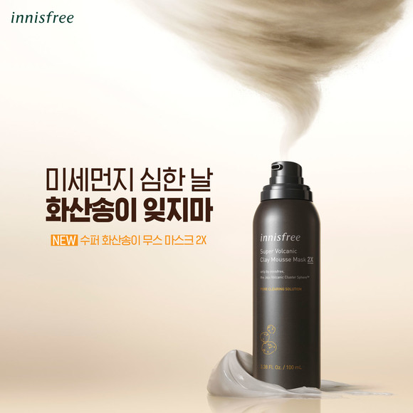 이니스프리가 모공 속 피지는 물론 미세먼지까지 제거해주는 ‘수퍼 화산송이 클레이 무스 마스크 2X<사진>’를 출시한다. 이 제품은 기존 제주 화산송이 대비 2배 더 강력한 피지 흡착력을 지닌 제주 화산송이 스피어가 함유돼 과다한 피지를 더욱 강력하게 제거해준다.
