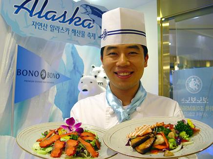 프리미엄 씨푸드 패밀리레스토랑 보노보노는 알래스카주정부와 함께 25일부터 8월 24일까지 한 달 동안 알래스카 북극 청정해역에서 직접 공수해온 자연산 광어, 연어, 훈제연어, 은대구, 관자 등을 이용한 다양하고 신선한 해산물 요리를 선보이는 ‘자연산 알래스카 해산물 축제’를 진행한다고 밝혔다. 이번에 선보이는 메뉴는 알래스카 자연산 광어에 매콤달콤한 한국식 고추장 소스를 곁들인 광어 고추장 양념구이, 은대구를 레몬 간장소스에 절인 후 오븐에 구워낸 은대구 레몬구이 등 기존의 140여 가지 메뉴와 더불어 알래스카의 해산물 요리를 다채롭게 즐길 수 있다. 행사기간 동안 보노보노에는 북극 빙하와 북극곰 모형, 대형 킹크랩 전시 등 알래스카를 연상하는 볼거리도 제공한다. 또한 방문하는 고객에게는 선착순으로 보노보노 로고가 새겨진 머그컵, 주방 앞치마, 펜 등 다양한 사은품도 증정한다. |