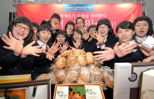 파리바게뜨는 이와 함께 행운의 상징인 포춘쿠키 2만여 개를 제공하는 ‘행운의 포춘쿠키’ 이벤트도 전개한다. 수험생을 응원하는 lucky letter와 함께 소속 학교 사진을 올리면 추첨을 통해 선정된 학교 수험생 전원에게 합격 기원 메시지가 들어있는 파리바게뜨 포춘 쿠키를 증정한다. 또, 홈페이지에서 개별적으로 수험생 응원메시지를 남기는 고객 1만 명에게는 포춘쿠키 교환권을 제공한다. |