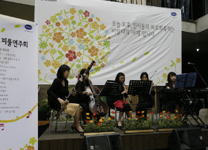 이날 행사는 현악 5중주 팀의 미니 콘서트 형식으로 진행됐으며, 현재 박카스 CF의 배경음악인 비발디의 사계 등 15곡의 다양한 클래식 및 재즈 연주가 펼쳐졌다. 동아제약 관계자는 “이번 길거리 연주회는 봄은 왔지만 높은 빌딩 숲 속에 갇혀서 봄의 기쁨을 제대로 못 느끼는 직장인들의 피로를 풀어주고, 현재 진행되고 있는 박카스 광고캠페인(당신의 피로회복제는?)을 대중과 좀 더 가깝게 교감하기 위해 이번 행사를 기획하게 됐다”라고 밝혔다. 종로에서 이날 공연을 관람한 직장인들은 “직장인들은 목요일이 가장 피곤하다는 통계가 있는데, 점심식사를 하고 길거리에서 우연히 클래식 연주를 들으니 심적으로 피로가 풀린 것 같다”라며 높은 호응을 보였다. 한편 이번 길거리 연주회는 오는 22일 똑같은 시간과 장소에서 한번 더 열릴 예정이다. |