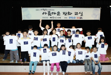 20일 시흥종합사회복지관에서 개최됐다. 이날 행사에는 판화가 이철수의 지도아래 아이들이 직접 고무판에 자기의 꿈과 희망을 조각하고, 각자의 작품을 아이들이 직접 티셔츠로 제작하는 프로그램이 진행됐다. 20년 만에 어린 아이들에게 판화를 가르쳐본다는 그는 "이 한명 한명의 아이들이 새싹 같다"며 "결국 감성이란, 작은 생명이 길가에 죽어 있는 것을 볼 때 찾아오는 아픔 같은 것이고, 이처럼 새싹 같은 아이들을 통해 메마른 어른들의 감성도 회복될 수 있을 것"이라고 말했다. 이날 판화교실에서는 60여명의 아이들이 참여했으며, 작가는 자신의 작품으로 만든 티셔츠를 복지관 아이에게 선물했고, 원판 작품은 복지관에 기증했다. |