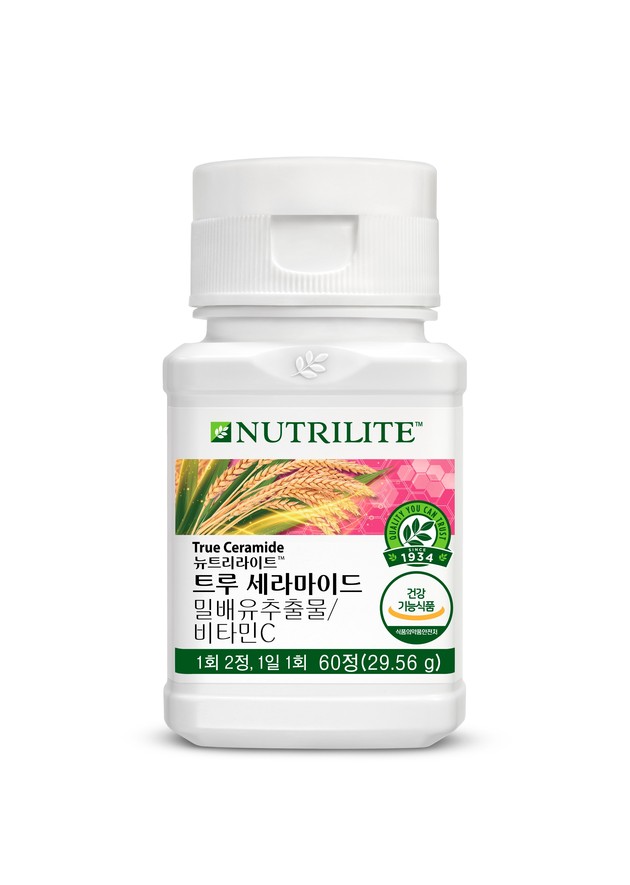 '뉴트리라이트 트루 세라마이드'는 식품의약품안전처로부터 국내 최초로 피부 보습 개선 개별 인정을 획득한 밀배유추출물에 비타민C를 결합한 듀얼 포뮬러가 특징이다. 피부 보습은 물론 비타민C 항산화 효과까지 더해 피부 장벽을 케어해준다.