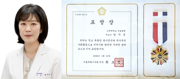 고대구로병원 가정의학과 남가은 교수가 서울특별시의회로부터 '서울특별시의회 의장 표창'을 수상했다.