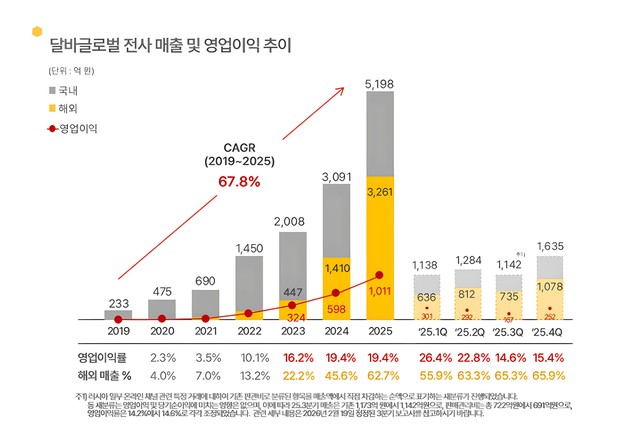 달바글로벌(대표 반성연)은 지난해 4분기 매출(연결기준) 1635억원, 영업이익 252억원을 기록했다고 20일 공시를 통해 밝혔다. 이는 전년 동기대비 각각 72%, 87% 성장한 것으로, 시장 컨센서스를 초과하는 수치다. 4분기 해외 매출은 125% 증가하며 전사 매출 비중이 66%를 기록했다.