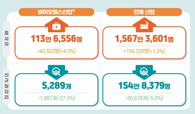 이어 "앞으로도 바이오헬스제조업과 의료서비스업의 일자리 변화를 지속적으로 모니터링하고, 현장의 변화를 국민이 이해하기 쉽게 분석·제공해 나가겠다"고 밝혔다.
