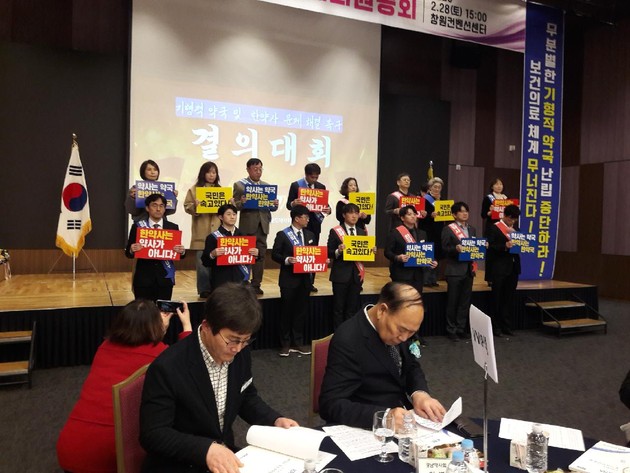 제72차 경남도약사대의원 총회가 지난달 28일 창원CECO별관에서 열렸다. 이날 개회선언과 함께 '국민건강 위협하는 약효 왜곡 입법 촉구문'을 낭독하며 한약사의 불법적 일반약 판매와 창고형 약국 확산 저지를 위한 입법을 강력하게 촉구하며, 국회 계류 중인 약사법 개정안 조속 통과를 강력 요구하는 촉구문을 낭독했다.
