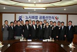 이날 실시된 노사대화합 선언식에는 김상후 사장과 이광희 노동조합 위원장, 박종선 노동부 서울남부지청장 등 인사가 참석했으며, 전국 3개 지역에 설립된 롯데제과 공장 지부 노조 대의원 등도 참석했다. 이날 행사에서 노사 양측은 상호 신뢰와 화합을 통해 어려운 경영위기를 극복하자는데 의견을 모아 합의문에 서명했다. 합의문의 핵심 내용은 올해 경영목표를 달성하기 위해 상호 신뢰를 바탕으로 고통을 분담하고자 임금을 동결하고, 회사는 인위적인 구조 조정을 지양해 고용안정에 최선을 다한다는 것이다. 롯데제과는 이번 선언이 생산성 향상과 근로조건 개선으로 이어지고, 이를 통해 행복한 직장문화가 정착될 것으로 기대했다. |
