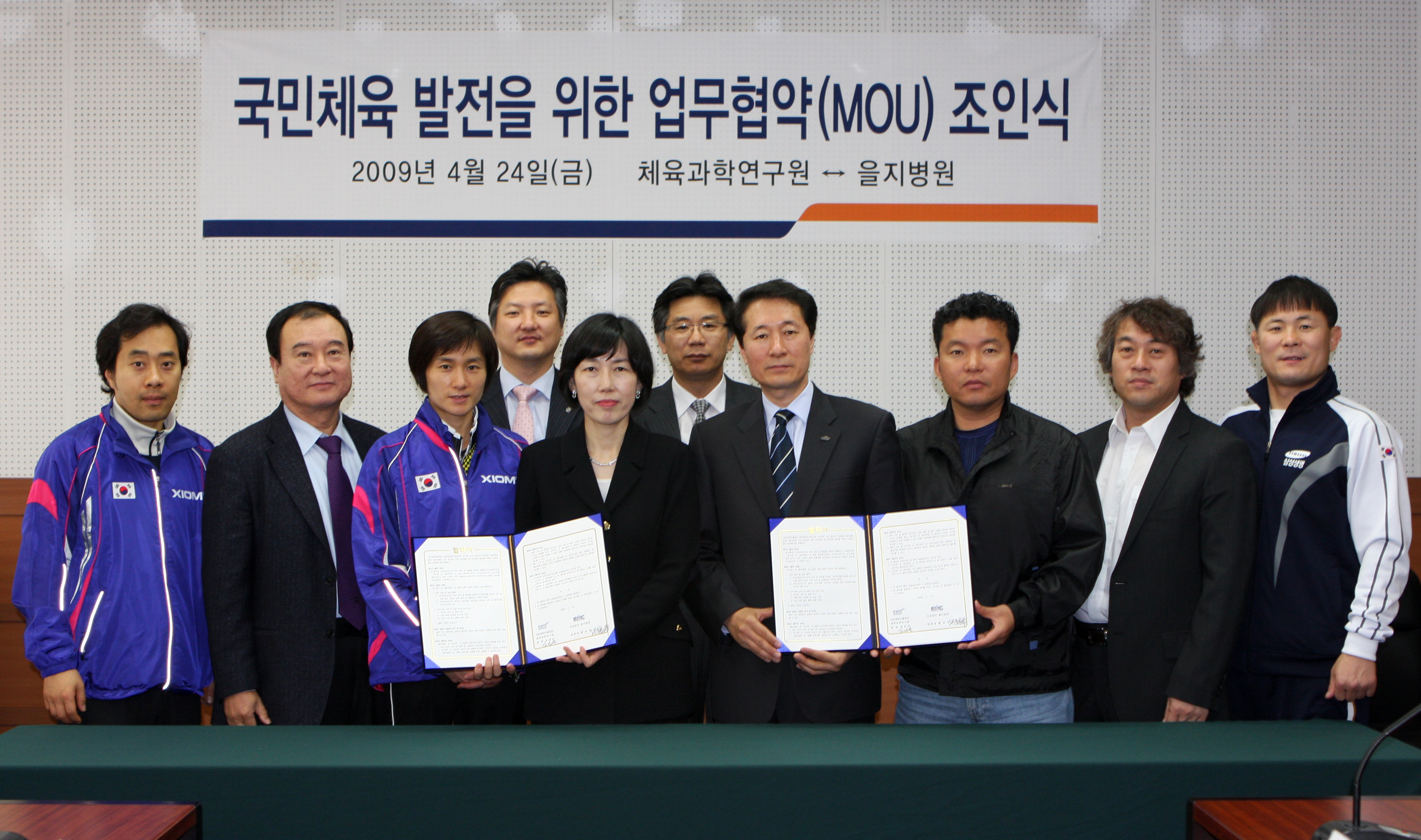 양 기관은 협약서에 따라 개인정보를 제외한 국가 대표선수의 부상관리 및 예방을 위한 모든 정보 및 통계자료를 상호 공유하게 된다. 또한 의료진과 연구원의 상호교류 및 공동 연구사업도 추진키로 했다. 이날 업무협약 조인식에는 홍성희 을지병원장과 김정만 체육과학연구원장을 비롯해 각 기관 관련 인사와 유남규, 현정화 탁구대표팀 감독, 황영조 마라톤 감독 등이 참석했다. |