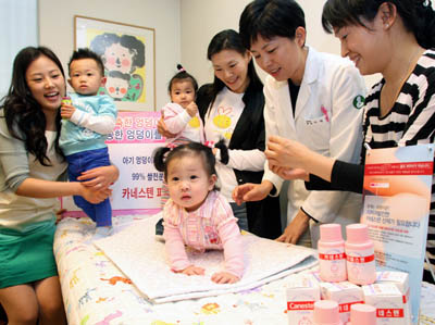바이엘헬스케어는 27일 신사동 미래와 희망 소아과에서 아기 기저귀 발진과 땀띠 예방에 대한 강의를 실시했다. 미래와 희망 소아과 서영미 원장은 ‘축축한 엉덩이 No~ 보송보송한 엉덩이를 지켜주세요!’라는 주제로 짓무르기 쉬운 연약하고 민감한 아기의 피부를 보다 안전하고 건강하게 지킬 수 있는 방법에 대해 강의했다. 이날 강의에 참석한 장현숙(30세, 서울)씨는 “이제 18개월 된 아들이 땀띠가 쉽게 나는 피부인데다 탈크 파우더 파동 때문에 걱정이 많았다”며 “이번 강의를 통해 요즘 같이 종잡을 수 없는 날씨에 생활 환경은 어떻게 만들어야 하는지, 그리고 아기 피부에는 어떤 것이 좋은지를 직접 배울 수 있어 매우 유익했다”고 참석 소감을 말했다. |