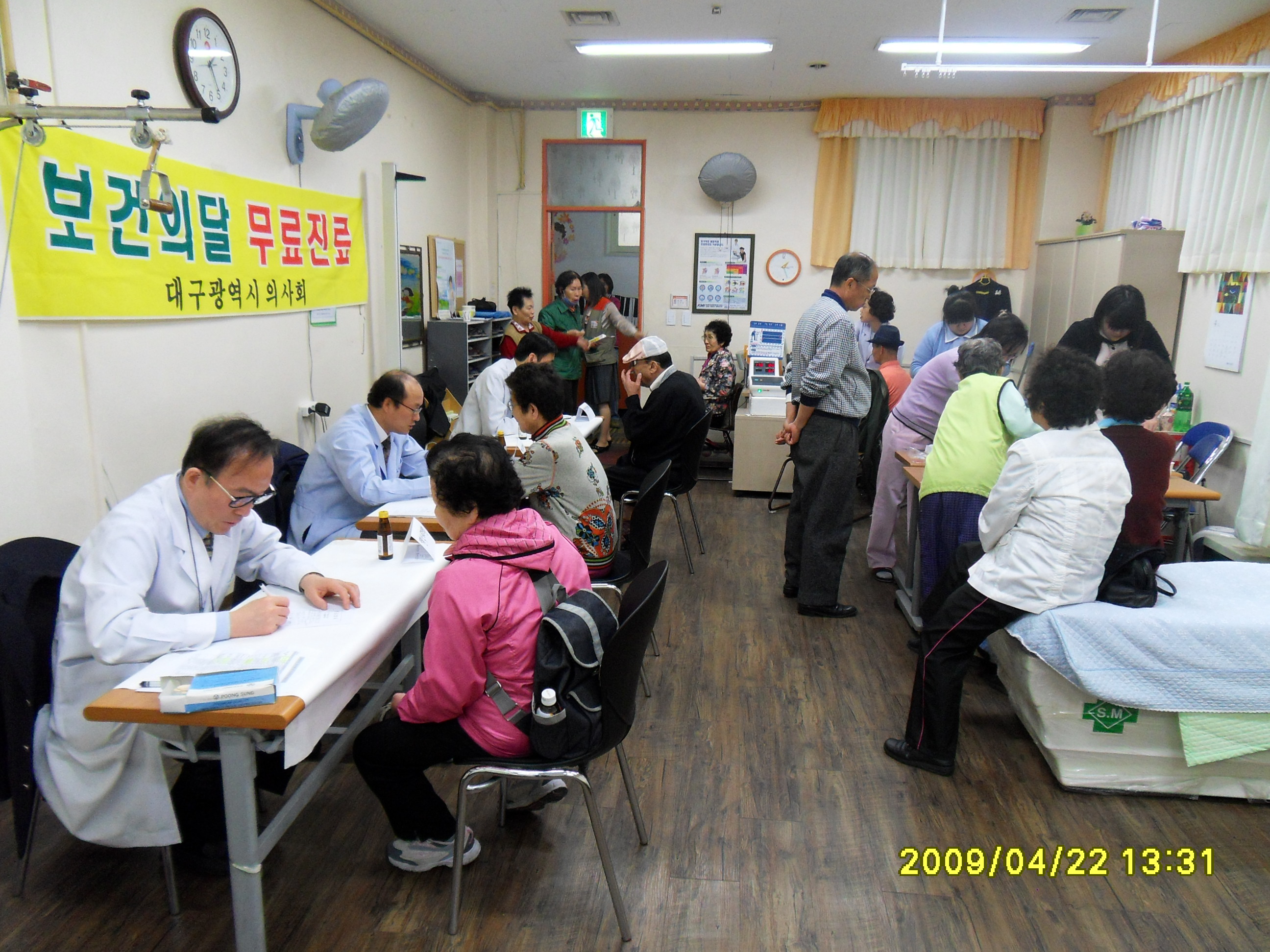 이번 보건의 달 무료진료 사업은 대구시내 7개 행정구역별로 노인회관과 사회복지센터 등 한 곳을 선정해 지난 4월 14일부터 23일까지 7일간 취약지역 저소득층 환자를 대상으로 의료시혜를 베풀었다.. 진료반 구성은 각 구별 순번제로 운영, 의사 및 간호사 각 3명으로 편성하여 실시됐다. 대구시의사회가 실시해오고 있는 무료진료사업은 의사단체가 회원 권익만을 위한 이익단체가 아닌 지역사회 속에서 시민과 함께하고 봉사하는 의료인상을 심어가는 등 전문 직능단체로서 시민에게 한발 더 다가가기 위한 시민 계몽사업의 일환으로 매년 취약마을 찾아 무료진료사업을 펼쳐오고 있다. |