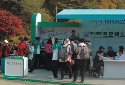 이번 캠페인은 가파른 증가 추세에 있는 심혈관질환 대한 인식을 높이고 질환의 조기 예방을 돕기 위해 기획됐다. 주요 산행로에 설치된 자가진단 키오스크(kiosk)에서 ‘심혈관질환 체크 프로그램’을 통해 개인의 심혈관질환 발병 위험도를 확인할 수 있으며, 전문의를 통해 심혈관질환 예방법 및 위험인자 관리법에 대한 상담도 받을 수 있다. 그 외에도 기념품과 심혈관질환 소책자를 증정할 예정이다. 주요 이벤트 진행 장소는 치악산 (강원도 원주시), 내장산 (전북 정읍시), 관악산 (안양시 석수동), 수락산 (서울시 노원구) 등 4곳으로 총 8회에 걸쳐 진행된다. 이곳에는 일 평균 약 4000명에서 3만명 정도의 등산객 등반이 예상된다. 특히, 치악산과 내장산에서는 국립공원 관리사무소의 ‘쓰레기 되가져가기 운동’과 연계해 진행되어 등산객들에게 쓰레기 종량제 봉투를 배포할 예정이다. 바이엘헬스케어의 아스피린 프로텍트 정현정 PM은 “기온이 낮아지고 야외 활동이 늘어나는 가을철 환절기에 심혈관질환 발병률이 특히 증가하는데 이에 대한 예방을 돕기 위해 이번 행사를 기획하게 됐다”며, “특히 건강에 관심이 높은 중년층 등산객들이 적극적으로 심혈관질환을 예방하고 건강 관리를 돕는데 이번 체크 & 스타트 캠페인이 큰 도움을 줄 수 있을 것으로 기대한다”고 밝혔다. |