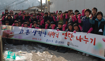 이번 봉사에서 고촌재단은 사회복지법인 밥상공동체와 연탄은행을 통해 서울 상계동 일대에 거주하는 독거노인들과 저소득 가구 등 총 25세대에 연탄 5000장을 후원했으며, 장학생 70여명이 직접 연탄을 배달했다. |