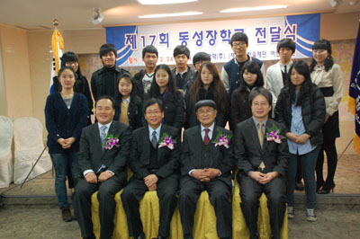 이날 수여식은 올해 17회째로 고등학생 3학년 16명을 선정해 장학금을 지급했다. 동성 장학금 전달식은 동성제약 송음학술재단 주최로 어린이재단에서 선발한 소년소녀가장 및 가정형편이 어려운 고등학생들을 대상으로 매년 10여명이상 장학금을 지급해 오고있다. 동성제약 이양구 사장은 격려사를 통해 “어려운 환경에 꿋꿋하게 생활해 나갈 수 있도록 희망을 주고 싶다”며 작은 도움이지만 어려운 상황에서도 실망하거나 포기하지 않고, 밝고 건강한 꿈을 키워 훌륭한 사람이 되어주길 당부했다. 송음학술재단(구 동성장학재단)은 동성제약 창업주인 고 이선규회장이 기업이윤을 사회 환원차원에서 1994년 설립하여 어린이재단과 함께 ‘사랑을 나눕니다’라는 슬로건을 가지고 매년 장학 사업을 시행하고 있다. 장학금 지원은 17년간 273여명에게 총 4억여 원이 지원됐다. |