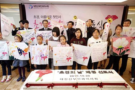 박노준 회장은 환영사를 통해 “초경이 점차 빨라지고 있지만 초경이 빨라지는 만큼 정신적으로 준비되지 못한 채 초경을 맞이하게 된 아이들이 충격과 혼란을 겪게 되고 초경에 대한 부정적인 이미지를 갖게 된다” 며 “초경의 날 제정을 통해 초경을 공론화 하고 초경을 개인의 비밀이 아닌 가족의 축제, 사회적 축제로 자리매김하는 게 중요하다”고 밝혔다. 이어 대한산부인과의사회 장석일 부회장은 ‘초경의 날’ 제정 배경 및 중장기 플랜을 발표하며 향후 전개될 ‘초경의 날 캠페인’의 구체적인 프로그램과 계획을 제시했다. 선포식에서는 지난 8월 진행된 '초경의 날 명칭 및 슬로건 공모전' 수상자에 대한 시상식이 이어졌다. 초경의 날 명칭 공모전에는 ‘여우비(여자들만 아는 우리의 비밀)의 날’이 최우수상으로 선정됐으며, 슬로건 공모전에는 ‘초경, 소중한 내 몸의 건강한 첫인사’가 선정돼 캠페인 슬로건 개발 등에 활용됐다. |