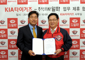 일화 심대근 식품사업본부장과 기아타이거즈 김조호 단장, 주장인 김상훈 선수를 비롯한 양사 관계자들이 자리를 한 가운데 진행된 이번 조인식에서 일화는 자사의 홍삼 파우치 제품인 ‘홍삼진액’을 2011년 시즌 약 5000만원 상당의 규모로 지원하기로 했다. 올 시즌 동안 지원되는 일화 ‘홍삼진액’은 엄선된 원료와 엄격한 품질관리로 생산된 제품으로 기아 타이거즈 선수들의 체력 보강과 경기력 향상에 많은 도움을 줄 것으로 기대된다. 심대근 상무는 “전년도에는 선수들의 부상 등 의외의 악재로 기아가 제 실력을 발휘할 수 없었던 것 같아 매우 아쉬웠다며, 올해에는 보강된 선수들을 주축으로 반드시 우승을 할 수 있길 희망한다”는 메시지를 전했다. 이에 대해 기아 타이거즈 관계자는 “일화 홍삼 제품에 대한 선수들의 기대가 자못 크다”면서 좋은 경기 내용으로 보답하겠다”고 화답했다. |