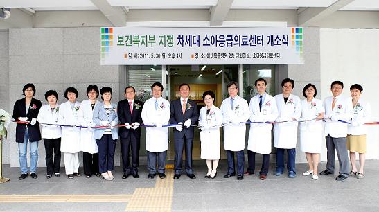 지난 4월 보건복지부가 공모한 ‘소아전용 응급실 모델 구축사업’ 지원 대상기관으로 선정된 이대목동병원은 30일 이대목동병원 대회의실에서 차세대 소아응급의료센터 개소식을 가졌다. 이미 2005년부터 별도의 독립공간에서 소아 전용 응급실을 운영하며 응급 소아 환자에 대한 양질의 진료 서비스를 펼쳐 온 이대목동병원은 이번에 새롭게 단장한 소아응급의료센터내에 소아 예진실, 격리실, 관찰 병실, 중증 응급 환자 구역 등의 전문 의료시설과 심장초음파기, 소아응급 랩 시스템, 환자 생체 감시 장치 등의 소아 전용 진료 및 검사 장비를 갖췄다. 또한 소아응급의료센터는 소아과 의사와 전문의가 24시간 진료하는 소아 전담 인력 체계를 구축했으며 가벼운 증상의 환아들이 최단 시간 내에 진료를 받고 돌아갈 수 있도록 외래응급실(Fast Track)과 감염 예방을 위한 격리 시설 및 수유실 등의 편의시설을 확충했다. 김경효 소아청소년과 과장은 “전문 의료 시설과 장비를 갖추고 소아과 의사와 전문의가 1년 365일 24시간 진료하는 소아응급의료센터는 의료서비스 수준을 한 차원 끌어올려 치료 성공률을 높이고 합병증을 최소화했다”면서 “외래응급실과 중증도 분류에 따른 빠른 진료로 소아 환자의 응급실 체류시간을 단축시켜 환자와 보호자의 만족도를 높일 수 있을 것”이라고 기대감을 나타냈다. 이날 개소식에는 최원영 보건복지부 차관을 비롯한 100여명이 참석해 소아응급의료센터 개소를 축하했으며 이후 소아응급의료센터에서 테이프 컷팅식과 현판제막식을 갖고 새롭게 단장한 소아응급의료센터를 둘러봤다. |