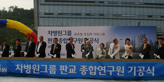 더불어 차병원 종합연구원 원장에는 CHA의과학대학교 김성진 석좌교수가 임명됐다. 국내 최대규모로 조성되는 ‘차병원 종합연구원’은 대지 3100평(10,248제곱미터) 규모의 연구용지로 건평 1만 7천여평(56,198제곱미터), 지하 4층, 지상 7층, 건물 2동(연구시설동, 사무동)규모로 2014년 상반기 완공예정이다. ‘차병원그룹의 핵심 연구소로서 세계적인 의과학 연구소를 목표로 조성되는 ‘차병원 종합연구원’은 교육, 연구개발은 물론 전임상과 분당차병원과 연계한 임상시험과 치료까지 가능해 명실상부 국내 유일의 메디컬 클러스터로 조성될 계획이다. 암연구소(소장 김성진), 줄기세포연구소(소장 정형민), 노화방지연구소(소장 문지숙), 불임 및 생식의학연구소(소장 이동률), 신약개발연구소, 임상중개연구소(소장 황성규), 산학협력연구소(소장 정광회) 등 연구소와 전임상센터, GMP 시설을 구비할 예정이다. 차병원그룹 종합연구원 김성진 원장은 “교육, 연구개발, 임상과 병원과 연계한 치료까지 한 자리에서 가능한 국내 의과학 연구소는 거의 없는 실정”이라며, “연구원이 완공되면 연구소 간의 협력은 물론 치료까지 연계가 더욱 활발해져 훨씬 큰 시너지를 창출할 수 있을 것으로 기대한다”고 밝혔다. 이어 “이 연구소를 통해 세계적인 의과학 인재 양성은 물론 세계적인 연구 성과들이 나올 수 있도록 최선을 다할 것”이라고 소감을 말했다. 한편, 차병원그룹의 종합연구원 설립 시동은 판교 테크노밸리의 내의 과학단지 조성에도 큰 활력소가 될 것으로 내다보고 있다. |