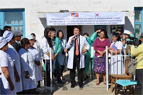 백남선 원장, 홍성철 내과 전임의 등 8명으로 구성된 이화의료봉사단은 몽골의 수도인 울란바토르에서 약 100km 떨어진 아르갈란트 지역을 중심으로 의료봉사활동을 펼쳤다. 아르갈란트는 볼로르마(H.Bolormaa) 몽골 영부인이 운영 중인 보육원이 위치한 곳이기도 하다. 의료봉사단은 볼로르마 영부인 소개로 현지 의료진들과 함께 아르갈란트 보건소에 진료소를 만들어 약 300여 명의 환자들을 치료했다. 백 장은 의료봉사활동 후 울란바토르로 돌아와 몽골 국립암센터에서 유방암 라이브 서저리(Live Surgery)를 시행하기도 했다. 또 백 원장은 몽골 국립암센터 바야르 오윤(Bayar Oyun) 부원장, 다흐단 야가안(Dagdan Yagaan) 외과 과장이 참석한 가운데 유방암 환자 2명을 수술하면서 자신의 노하우를 몽골 의료진에게 전수했다. 수술 후에는 몽골국립방송(MNB), 최대민영방송인 UBS 등 현지 방송사에서 인터뷰가 쇄도하는 등 세계적인 유방암 수술 대가의 방문에 큰 관심을 보였다. 백 원장은 인터뷰뿐만 아니라 UBS 방송국의 ‘커피 앤 티’ 프로그램에 직접 출연해 1시간 동안 암을 예방하는 건강법에 대해 강의하는 등 짧은 일정 속에서도 많은 언론을 통해 몽골인들에게 암 예방의 중요성을 알리는 데 노력했다. 백 원장은 "취임사를 통해 이대여성암전문병원의 글로컬(글로벌+로컬) 화를 내세웠는데 이번 방문은 이를 위한 첫 발걸음”이라며 “직접 환자들과 만나고 이들을 치료하면서 우리 의료 수준의 우수성을 세계적으로 알리는 기회가 됐다”고 말했다. |