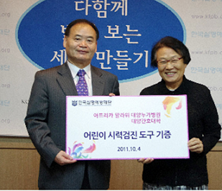 대양누가병원은 한국인이 말라위에 설립한 병원으로 현지인들에게 무료진료활동을 펼치고 있으며 '대양간호대학'을 설립해 간호사 양성에도 힘쓰고 있다. 말라위는 만성적인 영양결핍과 혹독한 자연환경으로 어려움을 겪고 있는 아프리카 국가 중 한 곳으로 시력측정기구가 없어 어린이 눈 보건상태가 매우 열악한 것으로 알려져있다. 신언항 회장은 시력표 기증을 계기로 시각장애 어린이 수술비를 지원하고 국내에서 쓰지않는 안경을 모아 전달하는 등 다양한 실명예방 사업을 전개할 계획을 밝혔다. |