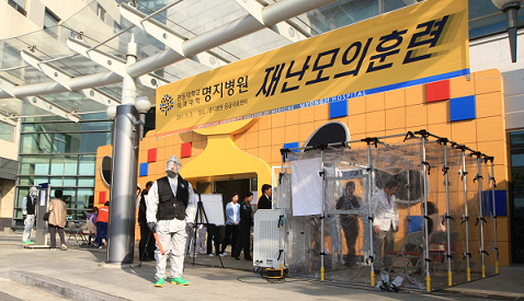 관동의대 명지병원(원장 김세철)은 지난 3일 응급의료센터와 중환자실에서 의료진 및 모의환자, 행정 및 보안요원 등 100여 명이 참석한 가운데 재난관리 모의훈련을 실시했다. 신종플루가 변종이 된 변종 인플루엔자의 범 유행으로 인한 대량 환자 발생 상황을 가상으로 설정해 실시된 이번 훈련은 감염성 환자에 대한 격리 구역에서의 진료와 응급 및 중증 환자에 대한 신속한 처치, 노출환자 및 병원 직원의 감염관리 대책 등을 중점으로 했다. 이날 재난관리 모의훈련 후에는 모의훈련에 대한 평가회를 갖고 문제점에 대한 개선책을 모색했다. 경기북서부 지역에서 최초로 실시된 이번 훈련에는 고양시 덕양구보건소와 고양시 소방서 등 유관기관 등이 함께 참여했다. 김세철 원장은 “신종플루 대응 1등 병원의 자부심으로 언제 일어날지 모르는 재난사태에 대한 만반의 준비 태세를 갖춰 실제 대형 재난이 발생하더라도 이번 훈련과 같이 완벽히 대처할 수 있도록 만전을 기해주길 바란다”고 말했다. |