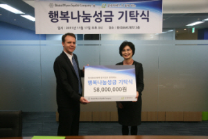 이번 기금 전달식은 마이클 베리 한국 BMS제약 사장과 굿네이버스 김인희 부회장이 참석한 가운데 한국BMS제약 사옥에서 진행됐다. 이 기부금은 한국BMS제약 직원이 자발적으로 원하는 금액만큼 급여에서 공제하는 방법으로 조성됐다. 저소득 가정 아동을 지원하는 △아이들의 행복한 공간 만들기, 학대 피해 아동 지원사업인 △스위트 홈, 그리고 긴급 사례 아동 및 만성신부전증 아동에 대한 신장 이식 수술 지원비로 쓰이게 된다. |