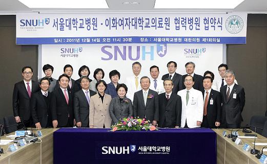 양 병원은 14일 서울대병원 대한의원 제 1회의실에서 협력병원 협약식을 개최했다. 협약식에는 이화의료원 서현숙 의료원장, 김광호 이대목동병원장, 백남선 이대여성암전문병원장과 서울대병원 정희원 병원장, 김승협 진료부원장, 노정일 소아진료부원장 등 양 병원 경영진이 참석했다. 이번 협력병원 협약으로 양 기관은 향후 진료의뢰 환자에 대한 편의제공 및 의학정보 교환, 임상 및 기초분야 공동연구 및 학술지원 등을 통해 의료계 공동 발전과 환자 편의성 향상, 국민 건강증진을 위해 노력하게 된다. 협약은 사립대 병원인 이화의료원과 국립대학교 병원인 서울대병원이 협력병원 협약을 통한 상호 벤치마킹을 통해 임상 및 기초 분야 공동연구 및 학술지원, 상호 교육 참여 등을 활성화하기 위한 것이라는 점에서 의미가 있다. 또 변화하는 의료환경과 치열한 경쟁 상황 속에서 사립대 병원과 국립대 병원이 상호 협력을 통한 경쟁력 강화에 앞장섰다는 점에서 의료계 전반의 눈길을 끌고 있다. 서현숙 의료원장은 "이번 협약은 이화여자대학교 의료원이 미래 새로운 경쟁력 확보를 위해 국내외 유수 병원과 전략적 제휴를 확대하는 차원에서 이뤄진 것으로 향후 환자 편의 향상은 물론 연구 역량 강화, 교육 활성화 등을 통해 한단계 더 도약할 수 있는 계기가 될 것으로 기대하고 있다"고 말했다. |
