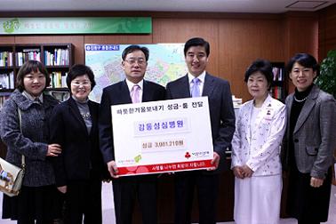 자투리 나눔기금은 교직원 717명이 자발적으로 참여하여 봉급 중 1천원 미만의 우수리를 적립하는 것으로, 2009년부터 시작된 교직원들의 나눔 기금이다. 해당 기금은 강동구청의 ‘희망 2012 따뜻한 겨울 보내기 사업’ 기금으로 활용되며, 지역 내 소외계층을 대상으로 생계비, 응급 구호비, 의료비 등을 지원하는 데 쓰이게 된다. 신동범 행정부원장은 “이번 기부를 시작으로 항상 지역사회의 어려운 이웃과 함께 하는 강동성심병원이 되기 위해 노력하겠다”고 밝혔다. 한편, 강동성심병원은 교직원 봉사단체인 ‘클린봉사단’을 통해 수해복구지역 봉사, 저소득 노인 가구, 한부모 가정 지원 등 다양한 사회공헌 활동에 적극 나서고 있다. |