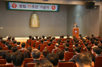 이장한 회장은 기념사를 통해 “지난 71년 동안 비약적인 성장과 도약의 발판을 마련해준 창업주인 선대 회장님과 선배 임직원, 고객들에게 이 자리를 빌어 진심으로 감사한다”고 전하고 “임직원 모두가 업무에 대한 열정과 도전정신으로 재무장하고 깨어 있는 기업문화를 확립함으로써 종근당의 중장기적인 발전을 이어나가야 한다”고 당부했다. 이날 창립 71주년 기념식에서는 장기근속자 및 우수사원에 대한 포상을 실시해 조영관 전무, 경보제약 김우상 이사가 30년 근속상을, 영업기획팀 조대흥 부장 외 16명이20년 근속상을, 항암제팀 윤수미 과장 외 57명이 10년 근속상을 수상했다. DDS연구실 박소현 대리가 대상을, 의약4지점3소 김형상 대리 외 22명이 가치창조상을, 대외협력2팀 김민권 차장이 공로상을 받았다. 20년 이상 장기근속상과 대상 및 가치창조상 수상자들에게는 해외 연수의 특전이 주어진다. |