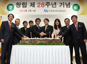이날 허일섭 이사장은 창립 기념사를 통해 “설립 이래 28년 동안 한결같이 연구에 힘써 오신 여러분께 감사드린다”며 임직원의 노고를 치하하고 “열정을 가지고 연구에 매진해 백신 분야의 메카가 됨은 물론, 항암제 및 세포치료제 분야도 더욱 박차를 가하자”고 격려했다. 이날 기념행사에서는 공로과제와 우수연구원에 대한 시상도 이뤄졌다. ‘PEG-G-CSF’ 과제를 연구하고 있는 조의철 연구위원, 강관엽 수석연구원 등 4명을 비롯해 AI백신 과제를 연구하고 있는 우규진 수석연구원, 이상호, 유현승 선임연구원이 연구과제 성과에 따라 공로과제 표창을, 김성근 책임연구원, 허정현 선임연구원, 곽희천 연구원이 우수연구원 표창을 받았다. 또 20년간 장기 근속해 온 임형권, 김정섭, 우규진 수석연구원과 10년간 장기 근속해온 안진형, 민보경, 김수인 책임연구원 등 6명, 총 9명이 장기근속 표창과 부상을 받았다. |