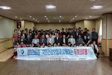 경희의료원 의료진 신장내과 이태원 교수 외 총 33명이 참여한 이번 봉사는 국민건강보험공단과 결핵협회와 함께 진행했다. 의료봉사는 양촌읍사무소와 노인복지회관에서 진행됐으며 내과, 가정의학과, 이비인후과, 안과, 신경외과, 비뇨기과, 종합한방치료, 치과, 물리치료, 임상검사, X-RAY검사 등 총 500여명이 진료 및 검사를 받았다. 의료진들은 나눔에 대한 마음 하나로 휴일도 반납한 채 적극적으로 봉사에 참여했다. 경희의료원 한마음봉사단은 1997년 3월 창단 이후로 국내·외에서 의료봉사를 80회 이상 실시해왔다. |