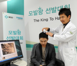 이번 행사는 남성형 탈모에 대한 인식을 높이고 탈모 조기검진과 의학적 치료의 중요성을 알리기 위해 진행됐다. 행사에 참여한 MSD 임직원들은 피부과 전문의 검진을 통해 모발의 굵기 및 두피상태 등 모발의 건강상태를 측정하고 자신의 탈모 및 두피건강상태에 대한 상담을 받았다. 검진 결과 두피와 모발상태가 좋은 직원을 선정, 모발왕을 선발하는 행사도 병행했다. 한국 MSD 피부과팀 김민정 팀장은 “최근 탈모로 고민하는 젊은 남성들이 많아진 가운데, 사내 직원들에게 남성형 탈모의 조기진단과 의학적 치료에 대한 중요성을 알리는 차원에서 프로페시아팀과 함께 이번 행사를 진행하게 됐다”며 “앞으로도 탈모 남성들이 탈모치료에 대한 관심을 갖고 장기간의 임상연구를 통해 효과와 안전성이 입증된 의학적 치료를 통해 젊고 건강한 모발을 유지할 수 있도록 노력하겠다”고 전했다. |