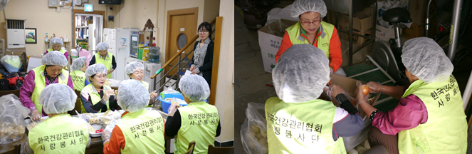 승가원은 우리 사회에서 소외받은 이웃들을 위한 복지사업을 펼쳐나가는 곳으로, 장애인복지, 지역사회복지, 노인복지 등의 전문적인 복지서비스를 제공하고 있다. 건협어머니사랑봉사단 및 직원들은 양파다듬기, 어묵꼬치 등 음식재료를 준비해 음식을 만들고 배식을 하였으며, 시설에서 생활하는 장애인들의 자립심을 키우기 위해 일일찻집 진행을 도왔다. 또한 시설 정리와 환경 개선활동을 통해 좀 더 나은 환경에서 생활 할 수 있도록 사랑 나눔을 실천했다. |