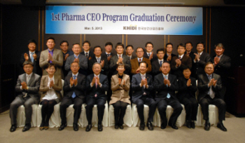 제1기 제약기업 최고경영자 과정은 지난해 11월부터 12주 동안 제약기업 CEO로서 다양한 산업 환경변화를 탐지하고 미래사업 방향을 설정해 적절한 전략과 투자방안 등을 모색하는데 도움을 줄 수 있는 다양한 커리큘럼으로 구성, 운영된 바 있다. 이번 수료식에는 국회 보건복지위원회 오제세 위원장과 고경화 진흥원장 등 내외빈이 참석한 가운데 열렸다. 오제세 위원장은 축사를 통해 “보건산업은 전 세계가 신성장동력으로 공통 인식하고 있는 만큼 현장에서 뛰고 있는 CEO분들이 제약산업 발전을 위해 보다 노력해주기를 부탁드린다”고 당부했다. 고경화 원장은 “보건산업이 발전하기 위해서는 산업체와 정부기관 등이 글로벌 진출에 필요한 정보를 공유하고 노하우를 습득하는 일이 중요하다”며 “제약기업 최고경영자 과정이 제약산업을 발전시키는데 중요한 역할을 다할 수 있도록 앞으로도 정부 정책에 많은 관심을 가져달라”고 말했다. |