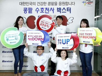 이 행사는 박스터 임직원들이 콩팥 건강의 중요성에 대해 다시한번 상기하고, 전 세계 콩팥 질환을 가진 환자들의 질환 치료와 극복을 염원하기 위해 마련됐다. 특히 세계 최초의 복막투석 제품을 개발하며, 투석치료를 선도해온 박스터의 기업 소명의식을 담고 있는 동시에 ‘비웰 앳 박스터(Be Well at Baxter)’라는 박스터 임직원 건강증진 프로그램의 일환이기도 하다. 이날 박스터 임직원들은 하루 동안 콩팥모양의 수호천사 티셔츠를 입고 근무를 하며, 콩팥 환자들에게 추천되는 저칼륨 과일먹기 체험, 단백뇨 진단키트 무료 배포, 혈당 및 혈압체크, 콩팥건강을 위한 생활수칙 발표 등의 행사를 가졌다. 손지훈 대표는 “전 세계 인구 중 3억5300만명이 넘는 사람들이 만성콩팥병을 앓고 있으며 진단조차 받지 못하고 사는 사람도 수 백 만명이상”이라고 말하며 “세계 콩팥의 날을 기념해 콩팥질환 조기진단 및 생활 속에서의 콩팥 건강관리의 중요성에 대해 다시한번 인식하는 계기가 되기를 바란다”고 전했다. |
