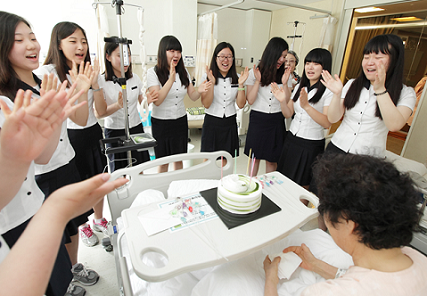 병원에 입원 중인 환자들과 고객들에게 음악을 통한 완치의 희망을 전달하기 위해 기획된 이번 합동 공연은 이대여성암병원 여성암 환우들로 구성된 해피바이러스 합창단과 인천 숭덕여고 샤론 합창단이 함께 화음을 맞춰 이대목동병원 로비와 여성암 환우들이 입원 중인 레이디병동에서 공연을 했다. 이날 합창단은 ‘당신은 사랑받기 위해 태어난 사람’, ‘사랑으로’, ‘아름다운 세상’ 등을 부르며 환우와 그 가족들과 함께 즐거운 시간을 보냈다. 또 미리 준비한 사탕을 나눠 줬으며, 생일을 맞이한 여성암 환우를 위해 즉석 생일 파티를 해주기도 했다. 공연에 참여한 숭덕여고 김은희 학생(18)은 “병원에서 공연을 한다고 들었을 때에는 우리에게 관심을 가져줄 지 걱정했는데, 많은 환우들과 가족들이 박수를 치며 즐거워 하셔서 보람을 느꼈다”며 “환우들이 힘든 치료 과정 중에도 저희에게 따뜻한 미소와 격려를 해주셔서 도움을 드리러 온 저희가 오히려 더 큰 선물을 받아 돌아가는 것 같다”고 말했다. 한편, 해피바이러스 합창단은 이번 숭덕여고 샤론 합창단과의 합동 공연뿐만 아니라 정기적으로 이대목동병원 로비와 레이디병동에서 합창 봉사활동을 펼치고 있으며, 이대여성암병원에서 개최하는 각종 행사에서도 활발한 공연활동으로 치료 과정의 여성암 환우들에게 완치에 대한 긍정의 힘을 나눠주고 있다. |