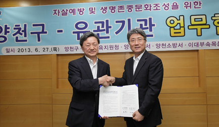 이대목동병원과 양천구청, 양천경찰서, 양천소방서, 강서교육지원청, 홍익병원 등 6개 기관은 지난 27일 양천구청 기획상황실에서 ‘자살예방 및 생명존중 문화 조성’을 위한 업무협약을 맺었다. 이날 업무협약에는 김광호 이대목동병원장, 전귀권 양천구청장 권한대행 등 구내 주요 기관장들과 담당 직원 30여명이 참석했다. 6개 기관은 이번 업무 협약을 통해 ▲응급의료(이대목동병원, 홍익병원) ▲응급구호(양천경찰서, 양천소방서) ▲예방교육(강서구청, 강서교육지원청) 등 3개의 전문분야에서 유기적인 업무 협조와 자료 공유를 통해 자살률 낮추기와 함께 구민들을 대상으로 생명존중 문화 조성에도 함께 나설 예정이다. 또 자살 시도자 기초 정보 제공 및 유가족의 사후 관리와 예방활동 활성화를 위해 정기적인 간담회도 개최하게 된다. 김광호 병원장은 “최근 통계자료에 따르면 우리나라 자살률이 OECD 평균보다 약 3배 이상 높은 것으로 나타났다. 더 심각한 것은 10대에서 30대 사망 원인 1위가 자살이라는 것”이라며 “오늘 협약식을 통해 전문 기관들의 유기적인 협력으로 자살 시도자 뿐만 아니라 그 가족의 2차 피해까지 막을 수 있게 최선을 다하겠다”고 말했다. 한편, 이대목동병원은 양천구 보건소로부터 정신보건센터를 위탁 받아 운영하고 있으며, 양천구와 강서구 치매지원센터도 위탁 운영 하는 등 지역 사회 의료를 위해 힘쓰고 있다. |