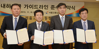 사내 하도급 가이드라인은 사내 하도급 근로자들이 원청 사업장 내에서 근로를 제공하고 원청의 성과에 기여하고 있으며 원청 사업주의 영향 아래에서 근로를 제공하는 점을 감안해 마련됐다. 또 원∙하청 사업주가 협력해 노동법적 책임을 다하는 동시에 기업의 사회적 책임 차원에서 근로자 보호 및 기업의 경쟁력을 높이기 위한 방안으로 마련됐다. 이번 협약체결은 서포터즈 위원들이 실태조사 결과를 바탕으로 사내하도급 근로자들의 근로조건 보호에 자율적으로 노력하겠다고 약속한 사업장을 추천함에 따라 이뤄졌다. 한편, 이번 협약에 참여한 기업은 한양대학교병원을 비롯해 대한적십자사, 대한항공, 신한은행, 아워홈 등 모두 5곳이다. |