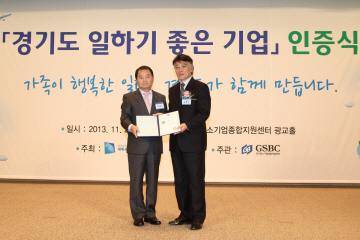 경기도는 지난달 29일 경기중소기업종합지원센터에서 ‘2013 경기도 일하기 좋은 기업 인증식’을 갖고, 휴온스에 인증서를 전달했다. 경기도는 기업의 가족친화제도 운영 실태와 근무조건, 성장잠재력 등을 평가해 휴온스를 포함한 25개 기업과 5개 공공기관을 선정했다. 이날 휴온스는 25개 기업 중 중견기업으로는 유일하게 사업에 선정되는 기쁨을 안았다. 특히 휴온스의 가족친화경영은 우수 사례로 선정돼 ‘Marry 휴온스, 직원을 가족처럼 섬깁니다’란 제목의 사례발표 시간도 가졌다. 이번 인증으로 휴온스는 무역기금 융자사업 가점 부여, 3년간의 지방세 세무조사 유예, 기술닥터사업 신청 시 5점 가점 부여 등 모두 26개 항목의 인센티브를 부여 받는다. 또 우수 인재 영입에 심혈을 기울여 온 전재갑 대표의 경영방침에 큰 도움이 될 것으로 기대된다. 전재갑 대표는 “근무환경과 처우가 좋을수록 일의 능률이 올라가고, 창의적인 사고를 지닌 능동적인 인재로 변모한다”면서 “휴온스를 일류 제약회사로 성장시키기 위해 우수한 인재를 선발하는 것은 물론 이들이 회사를 가족으로 느낄 수 있도록 가능한 한 모든 것을 지원하겠다”고 소감을 밝혔다. |