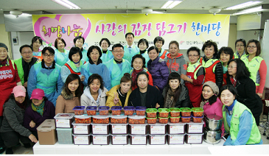 이날 김장 담그기 행사는 두곳에서 진행했다. 오전에는 관악농협농산물 백화점 야외 매장에서 "결혼이주여성과 함께 하는 1일 김장 담그기" 행사가, 오후에는 영등포구사회복지협의회 주관으로 "희망나눔 사랑의 김장 담그기 한마당" 행사가 한국조리사관학교 조리실에서 개최됐다. 이번 행사는 한림대학교강남성심병원 윤성대 행정부원장과 임은주 간호부장을 비롯한 팀장 및 UM 등 20여명이 참여해 도움의 손길을 펼쳤다. |