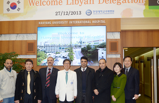 한양대학교병원에 27일 리비아 보건부 H.E Hussein A.B. Abdulla 차관을 포함해 리비아 보건부 일행이 방문했다. 이들은 한국의 의료기관을 방문, 한국 의료의 우수성을 시찰하기 위해 내한했다. 고용 한양대학교국제병원장은 리비아 차관 방문단을 위해 환영식을 진행했으며, 방문단은 한양대병원과 한양대류마티스병원, 한양대국제병원 등의 우수한 시설을 견학했다. H.E Hussein A.B. Abdulla 리비아 차관은 “한국 의료의 우수성에 대해서 이미 알고 있었지만, 실제로 이곳에 와서 한양대학교병원을 첨단 의료시설과 우수한 의료진을 보고 정말 놀랐다”면서, “앞으로 의료에 있어서 리비아와 많은 교류를 통해서 서로 발전하고 도움이 될 수 있었으면 좋겠다”고 말했다. 특히 리비아 방문단은 한양대학교병원의 줄기세포 및 류마티스질환 연구에 대해서 많은 관심을 가졌으며, 류마티스질환에 대한 치료와 연구에 대해서 배상철 한양대학교류마티스병원장이 소개하고 발표하는 시간도 가졌다. |