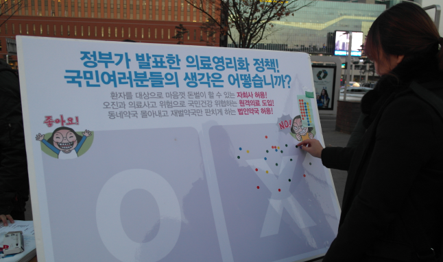 이들은 정부가 추진하고 있는 원격의료 허용, 영리자회사 설립 허용 등 의료민영화 진행 중단을 촉구하는 서명운동과 거리 캠페인 등을 펼쳤다.