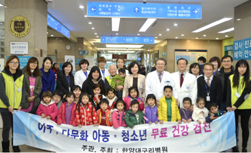 한양대구리병원(병원장 김경헌)은 지난 12~13일 본관 지하 1층 건강검진센터에서 구리시와 남양주시 이주·다문화 아동과 청소년들을 대상으로 무료건강검진을 시행했다. 구리시와 남양주시에 거주하는 이주·다문화 가정 아동과 청소년 절반 이상이 의료보험적용을 받지 못해 필요한 시기에 예방접종을 하지 못하는 상황이 발생하면서, 병원 측은 2010년부터 정기적으로 도움을 주고 있다. 김경헌 병원장은 "한국사회에서 자라는 이주아동들은 피부색, 언어, 문화의 차이에 의해 구별되기 이전에 모두 건강할 권리를 가진 존엄한 존재라는 취지에서 이번 행사의 의미가 있다"고 말했다. 소아청소년과 오재원 교수가 참여한 이 행사는 성장발달상담, X-ray 촬영, 혈액검사, 소변검사 등을 실시했다. 이번 행사를 위해 구리시의사회와 구리시약사회에서는 지역사회의 일원인 이주아동과 다문화 청소년들의 문제를 함께 공유하고자 검진 후 진료가 필요한 대상자에게 향후 진료지원과 건강한 지역 사회를 만들어 가기 위해 함께 노력하기로 했다. |