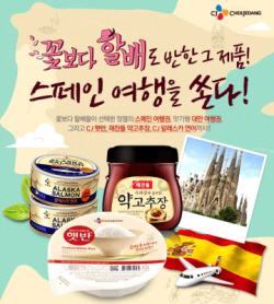 이번 이벤트는 ‘꽃보다 할배 스페인편’ 주인공들이 방송에서 즐겨먹는 햇반과 약고추장, 알래스카 연어가 여행 필수품으로의 인지도 및 소비 확대를 위해 기획됐다. CJ월디스 홈페이지에서 간단한 퀴즈 정답만 맞추면 참여 가능하고, 추첨을 통해 스페인 여행권(1명), 대만 여행권(2명), 햇반·약고추장·알래스카 연어 선물세트(100명)를 증정한다. ‘꽃보다 할배도 반한 그 제품! 스페인 여행을 쏜다’ 이벤트는 다음달 30일까지 진행되고, 최종 당첨자 발표는 5월10일 CJ월디스 홈페이지에 공지된다. |