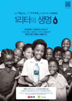 ‘1리터의 생명’은 오염된 물을 마시는 아이들에게 깨끗한 식수를 제공하기 위해 기아대책이 진행하는 식수위생시설개발 캠페인이다. 이러한 ‘1리터의 생명’ 캠페인에 동참하고자 농심은 최근 기아대책과 협약을 맺었으며, 오는 22일까지 20일간 백두산 백산수 판매액의 일부를 기부할 예정이다. 농심의 기부로 마련된 기금은 아프리카와 동남아시아 등지에서 열악한 식수위생 개선 및 개발 사업에 쓰이게 된다. 농심 관계자는 “이번 캠페인은 세계 물의 날(매년 3월22일)을 맞아 ‘먹는 물’의 소중함을 일깨우고, 열악한 식수환경으로 고통받는 세계인을 돕기 위한 것”이라고 설명하고 “앞으로 매년 기아대책과 ‘1리터의 생명’ 캠페인을 전개해 ‘이웃과 함께 나누는’ 농심 철학을 전파해 나갈 계획”이라고 밝혔다. |
