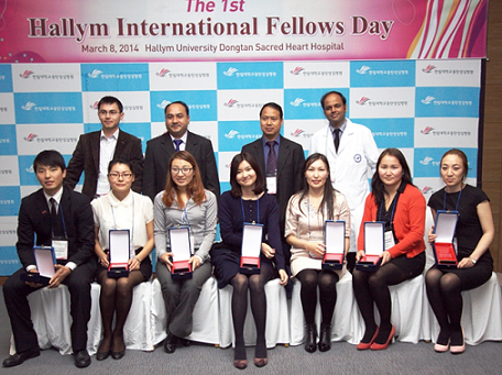국적은 달라도 우리는 ‘한림人’ 지난 3월 8일 한림대학교동탄성심병원 대강당에는 하얀 가운을 입은 외국인 의사 11명이 모였다. 한림대학교의료원이 개최한 ‘제1회 한림대학교의료원 외국인펠로우데이’에 참석하기 위한 것으로 현재 연수 중인 펠로우와 연수 지도교수가 자리했다. 그들은 국적에서부터 전공까지 모두 달랐지만 한림대학교의료원 산하병원에서 연수를 받았다는 점은 같았다. 대부분은 처음 만났지만 ‘한림 국제 펠로우십’ 참가자라는 사실과 타국에서 연수를 받았다는 공통점만으로도 금방 친해졌다. 그들은 어느새 서로 연수를 받으며 느꼈던 점이나 에피소드를 공유하며 즐거워했다. ‘노하우를 익히자’ … 한림으로 모이는 외국인 펠로우들 행사에서는 현재 한림대학교의료원 산하병원에서 연수에 참여하고 있는 외국인 펠로우 8명이 한림대학교의료원 펠로우십에 참여하게 된 계기와 생활을 비롯해 자국의 의료시스템, 소속병원에 대해 소개하고 앞으로의 계획에 대해 발표했다. 몇몇 펠로우는 자국에서 인구 고령화가 급속도로 빨라지고 있음에도 인공관절이나 척추, 족부, 심장질환을 치료할 수 있는 의사나 의료기관이 없어 해외연수의 필요성을 느꼈다고 밝혔다. 또 발표를 통해 한림대학교동탄성심병원 인공관절센터 장준동 교수와 한림대학교춘천성심병원 정형외과 이상수 교수, 한림대학교성심병원 척추센터 김석우 교수가 해외학회 특강과 수술 시연으로 인도, 몽골, 우즈베키스탄, 베트남 등에서 유명해 술기를 익히고자 한림대학교의료원 산하병원을 택하게 됐다고 밝혔다. 전세계적으로 실력을 입증받고 있는 한림대학교의료원의 노하우를 익히기 위해 찾은 경우도 있다. 저조한 출산율 해소를 위한 자궁경부무력증과 화상으로 인한 급성기 치료 및 재건성형을 위해 산부인과와 화상외과, 성형외과에서 연수를 받는 펠로우가 증가하고 있는 것이다. |