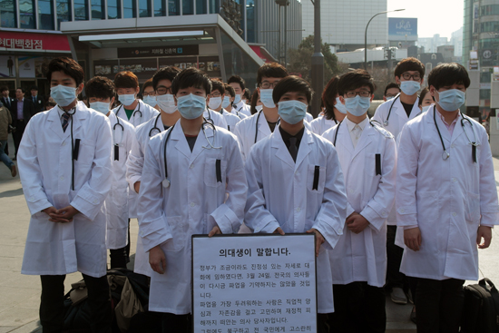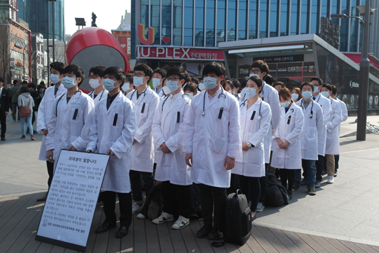 대한의과대학/의학전문대학원학생협회(의대협)는 16일 오후 3시 서울 신촌역과 명동역 인근에서 침묵시위를 진행했다. 시위는 30분간 이어졌으며, 신촌과 명동 두 곳을 합쳐 약 100명의 의대생이 참여했다. 의대생들은 흰 가운에 검은 리본을 달고 마스크를 쓴 채 침묵시위를 이어갔다. 의대협은 "이번 침묵시위는 현재 진행되는 정부와 협상이 원만히 진행되고, 교과서에서 배운대로 소신껏 의료행위를 할 수 있는 환경을 만들 것을 촉구하기 위한 것"이라고 밝혔다. 이어 "이번에는 제대로 된 협상이 이뤄지길 예비 의료인으로서 간곡히 정부 측에 요청한다"고 호소했다. |