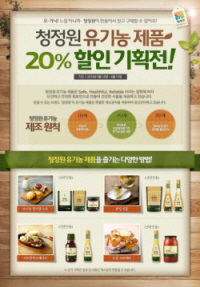 이번 기획전을 통해 설탕, 식초, 소스, 잼, 차 등 청정원의 다양한 유기농 제품을 모두 20% 할인된 가격에 판매한다. 청정원 유기농 제품은 전 제품에 농약과 화학비료를 일절 배제한 100% 유기농 원료만을 사용한다. 원료에 대한 까다로운 인증절차는 물론 엄격한 제조공정과 완제품 품질검사를 통해 소비자들이 신뢰할 수 있는 유기농 제품을 선보이고 있다. |